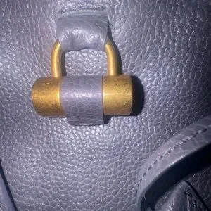 This elegant gray leather bag is perfect for any occasion. Its sleek design and high-quality material make it a must-have accessory. The gold accents add a touch of luxury.