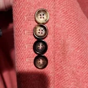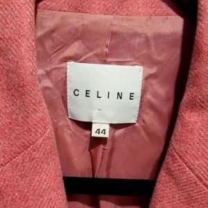 Beautiful vintage Celine blazer crafted in a soft cashmere-wool blend with a refined coral/rose tone. Tailored structure with built-in shoulder pads for a clean, classic silhouette. Single-button front closure with notched lapel and welt pockets. High-quality construction and timeless styling that pairs well with denim, trousers, or skirts for elevated everyday dressing.