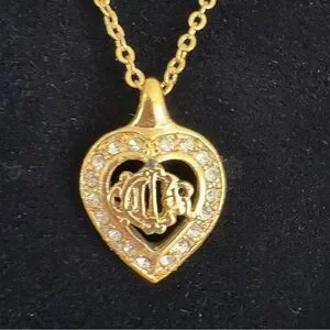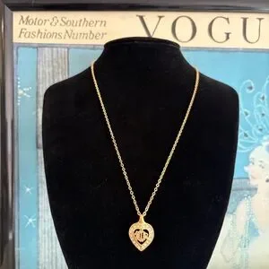 Christian Dior Gold Heart & Rhinestone Pendant Necklace