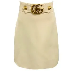 Gucci Ivory / Antiqued Gold GG Buckle A-Line Skirt