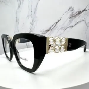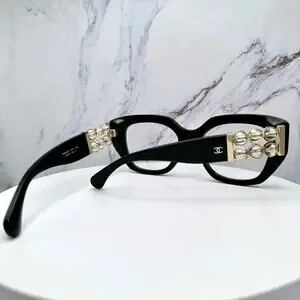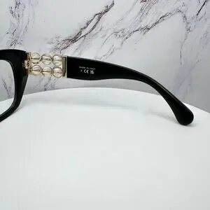 New CHANEL Eyeglasses Black Gold Cat Eye Clear Rotating Pearls 52mm