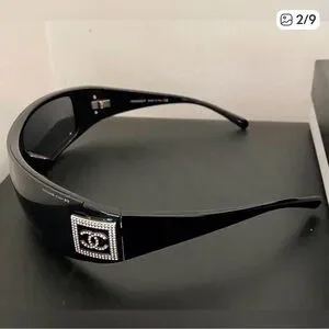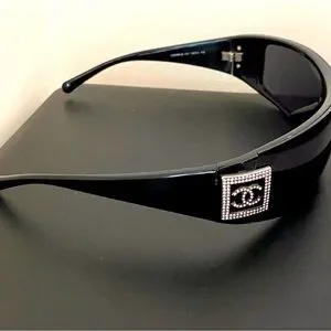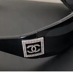 Vintage Chanel Black Rhinestones Shield Sunglasses Shield lens has been replaced