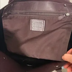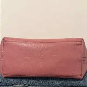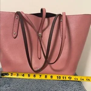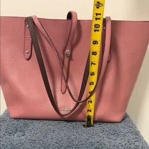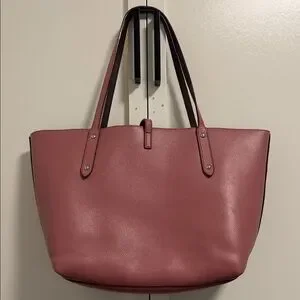 Chic Coach tote in dusty rose leather. Features dual handles and a sleek design. Ideal for everyday use. It has defects as shown in the photos and is dirty inside, and the straps have a small defect.