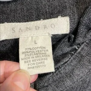 Sandro Paris Gray Denim Jacket Frayed Hem Cropped Sleeve French Designer L
