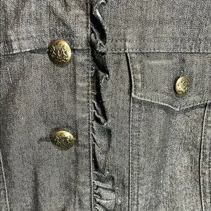 Summer office professional France french fall army autumn gray dark medieval romantic sandro paris jacket french designer denim jacket gray denim cropped jacket frayed hem jacket minimalist parisian style luxury casual