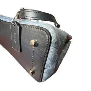 it's a medium-sized shoulder bag that is perfect for everyday use. features a snap closure and a silver hardware color. The bag comes in a denim/midnight blue exterior color, It also includes a bag charm accessory, and is part of the Coach Avenue product line. This bag is a great addition to any collection, and is sure to impress.