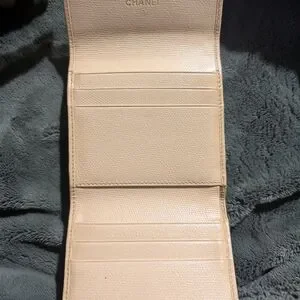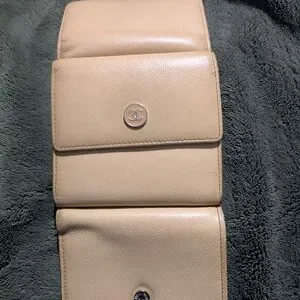 Classic CHANEL A perfect time to own a real Chanel Wallet for a great price . Compact wallet in cream leather. Features a silver-tone CC logo snap. Clean, structured silhouette. Smooth pebble-grain texture. Purchased and doesn’t fit in my small Chanel Purse. others like this style are selling for $300+.
