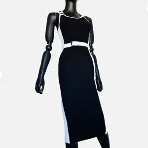 NWT Michael Kors Sleeveless Rib Knit Midi Bodycon Dress Size S Stretch Crow Neck