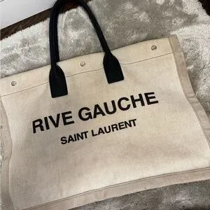 Authentic Saint Laurent Rive Gauche Tote in classic canvas and leather. This spacious and stylish bag is perfect for everyday use or as a statement accessory.