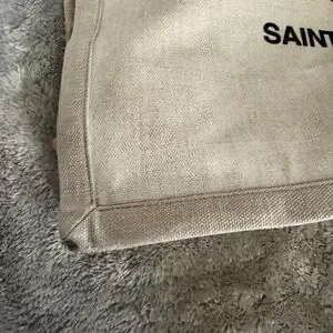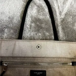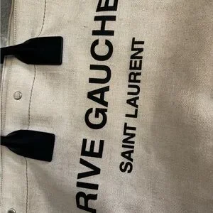 Saint Laurent Rive Gauche Beige Canvas Tote with Black Handles /canvas leather