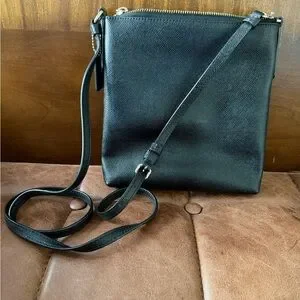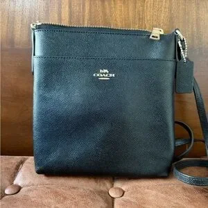 Authentic black crossbody bag by Coach. Features a textured leather design and sleek adjustable cross-body strap.