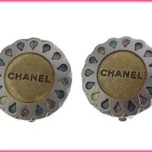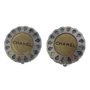 CHANEL Earring Silver x Beige x Green Women Authentic secondhand