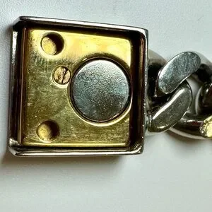 Fendi FF Logo Chain Link Bracelet In Silver And Gold Tone Metal, Size Small