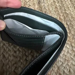 This sleek bifold wallet includes credit card slots, an ID window, and a folding design for practicality.