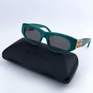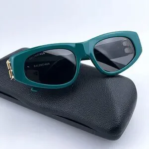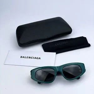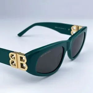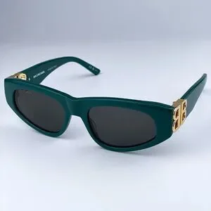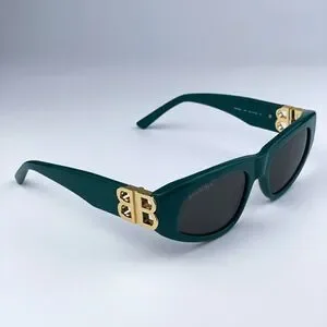 SALE! NEW Balenciaga BB0095S 005 Green Gold Logo Grey Cat Eye Women Sunglasses