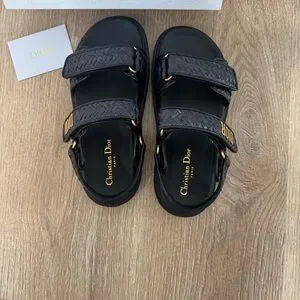 Authentic! Dior Dioract Woven Raffia Sandals - Black