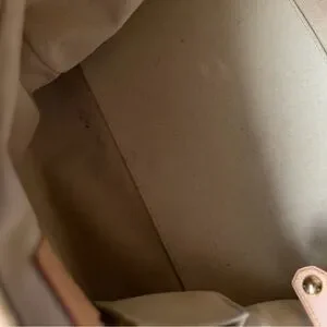 The untreated, light-colored leather trim on a Louis Vuitton handbag has turned a darker, honey-brown tan, called patina. It’s absolutely beautiful🩷