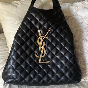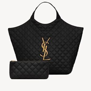 YSL, Saint Laurent iCare Tote Bag and Pouch, Black Quilted Leather