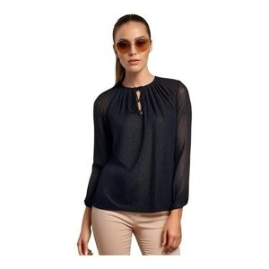 #MichaelKors #SparkleBlouse #BowFront #BlackBlouse #TexturedTop #LongSleeve #SizeSM #DesignerBlouse #PolyesterTop #ExcellentCondition #ChicStyle #FuzzyTexture