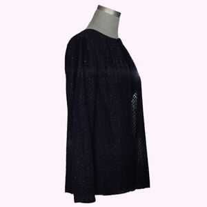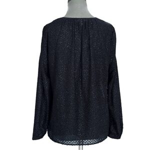 Michael Kors Black Fuzzy Sparkle Textured Blouse S/M Bow Front Long Sleeve