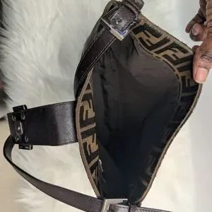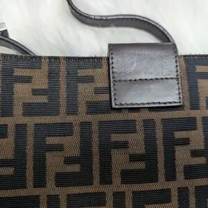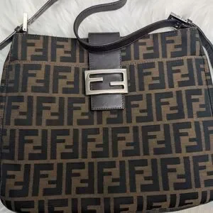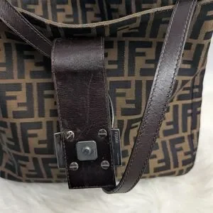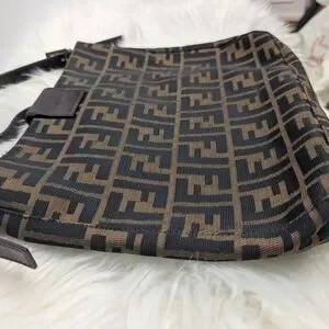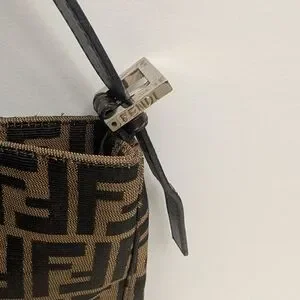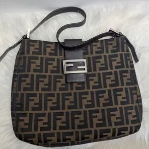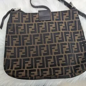 Authentic Fendi shoulder bag in brown FF canvas. Clean lines and classic logo hardware. Comfortable leather strap for everyday wear. Elegant brown tone complements any outfit.