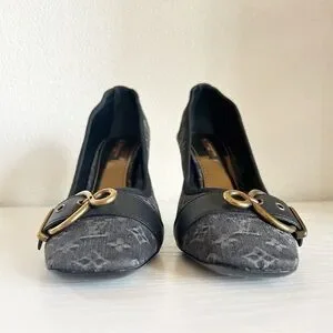 Louis Vuitton Vintage Monogram Canvas Black Gray Buckle Heels Pumps Size EU 39.5