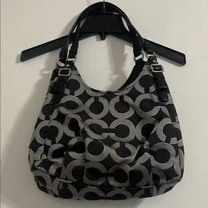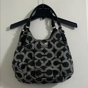 Coach Black Silver and Gray Circle Pattern Shoulder Bag