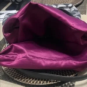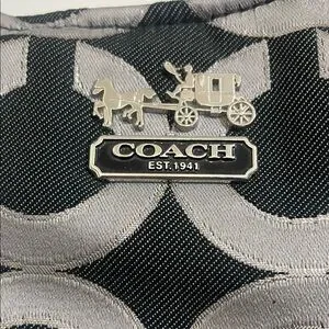 Stylish Coach shoulder bag with a bold circle pattern. Features a sleek black Silver and gray design. Perfect for everyday use.