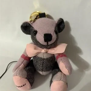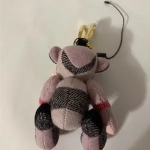 Cute plaid bear keychain with gold clip. Perfect for bags or keys.