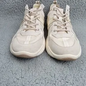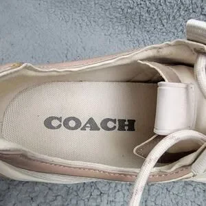 Coach Sue Runner Sneakers Womens 9B Beige Suede Athletic Low Top Lace Up Shoes. Pre-owned in good condition. Has some dirt marks and stains as shown in the last pictures. Normal wear on the Suede. Please review photos for details and let me know if you have any questions