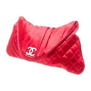 Luxurious CHANEL wristlet in vibrant scarlet. Features quilted pattern and signature logo. Adds elegance to any ensemble.