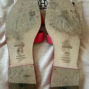 Hermès Pink/Rose Leather Oran Slides