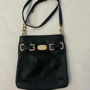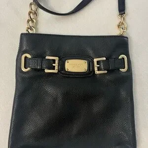 Michael Kors Hamilton Messenger Bag Crossbody Pebbled Leather Gold Accent, Black