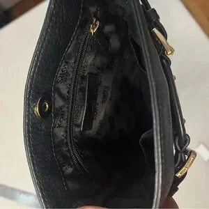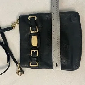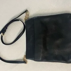 Michael Kors crossbody bag crafted from rich black pebbled leather and accented with signature gold-tone hardware. Designed for both style and function, it features an adjustable strap with chain detail and a spacious interior for your essentials.