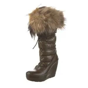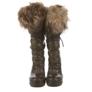 Moncler Nylon Fur Trim Lace-Up Boots - size 6 | US6, IT36 - Mocha Brown