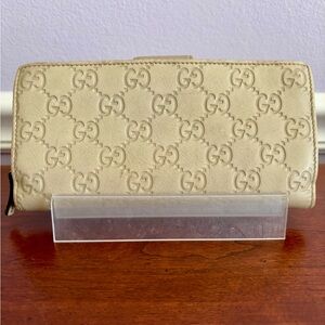 GUCCI Beige GG Monogram Wallet w/ Gold D-Ring Buckle – Authentic Preloved Luxury