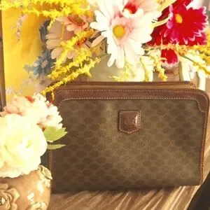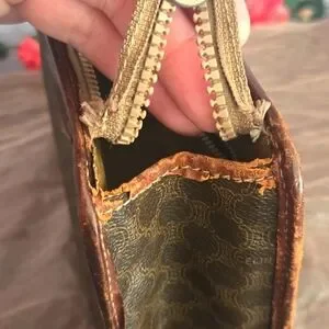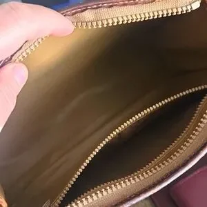 EUC, VINTAGE with minor peeling on the piping, but inside clean. Tarnish on the zipper pull. Inside leather is clean no peeling!