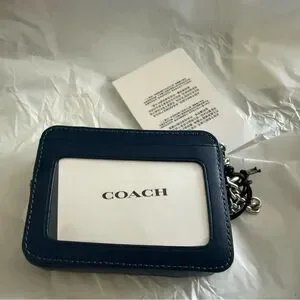 Coach Denim Zip Card Case Holder with Chain and Quilting