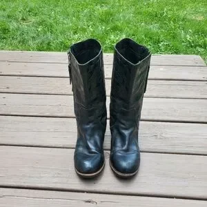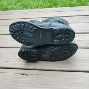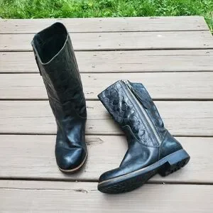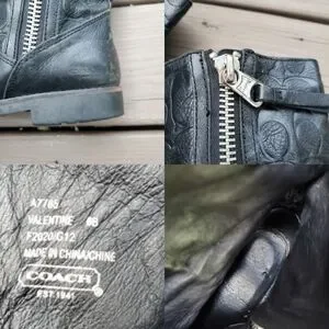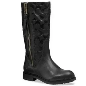 Coach Valentine Embossed Signature C Logo Black Leather Chunky Heel Zip Mid Boot