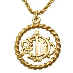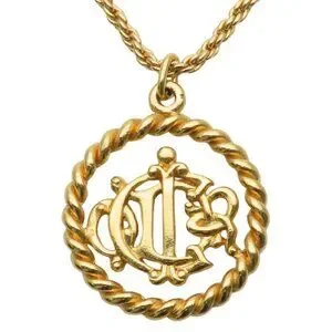 Christian Dior Necklace Emblem Logo Metal Gold GP Plated Accessory