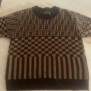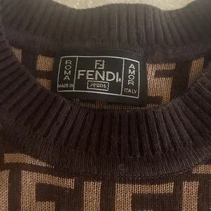 Stylish Fendi crewneck sweater with iconic pattern. Features black and brown tones. This is an Italian size 38. 17 inches pit to pit, will fit a small or medium best.