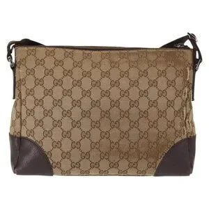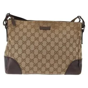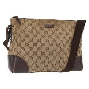 Pre-Owned Authentic GUCCI GG Canvas Shoulder Bag Beige Silver 114273