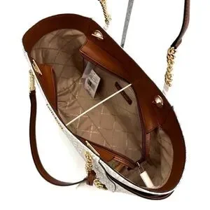 Michael Kors Large Chain Shoulder Bag & Double Zip Wallet Set Vanilla/Luggage