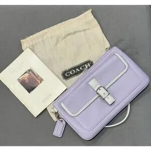 VTG Coach Wristlet Wallet Bag Envelope Clutch Lavender/Lilac Leather W/Dustbag