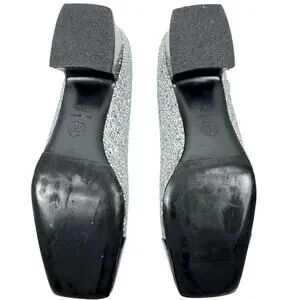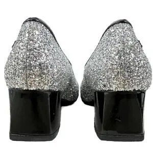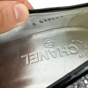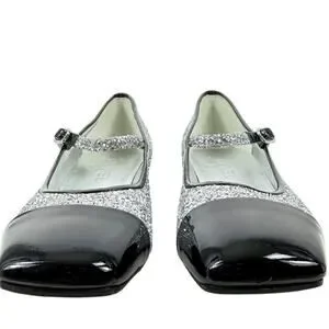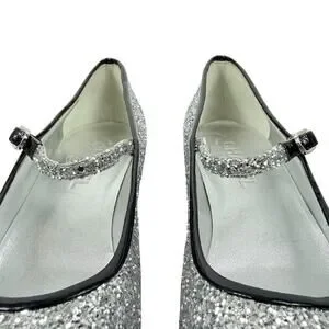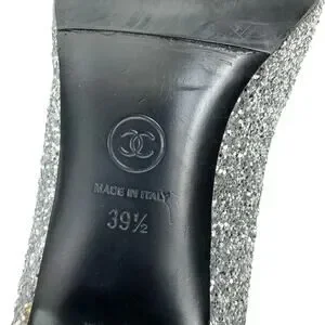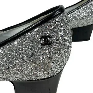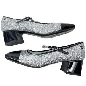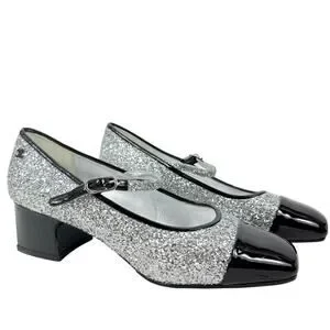 Chanel Glitter Patent Leather Cap Toe Mary Jane Pumps Silver Size 39.5
