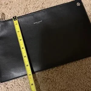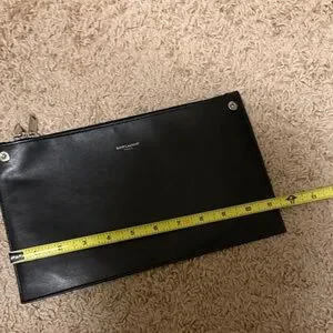 Sleek black leather pouch by Saint Laurent. Ideal for modern style.