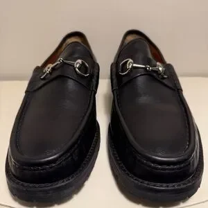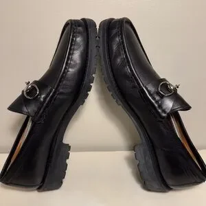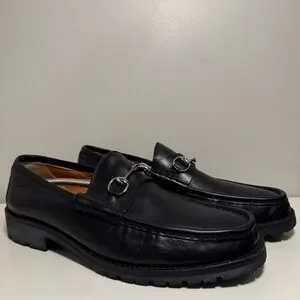 Gucci Horse Bit Lug Sole Black Leather Loafer Men’s Size 12.5 Brass Brown Logo