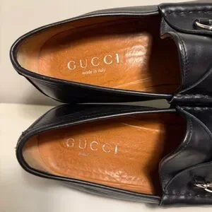 Preowned in great condition, some creasing and wear on leather upper. Horsebit has scratches and tarnish. Outsole has discoloration and wear. Inside is clean, minor use. Comes with replacement box.
