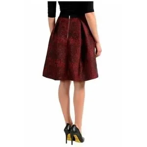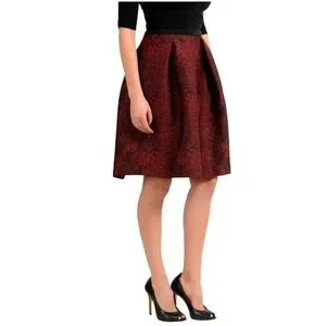 Burberry London Parade Red & Black Silk Jacquard Pleated A-Line Skirt NWT $750