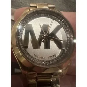 Michael Kors MK-3549 Watch Rose Gold Logo Dial Crystal 5 ATM Stainless SteelRARE
